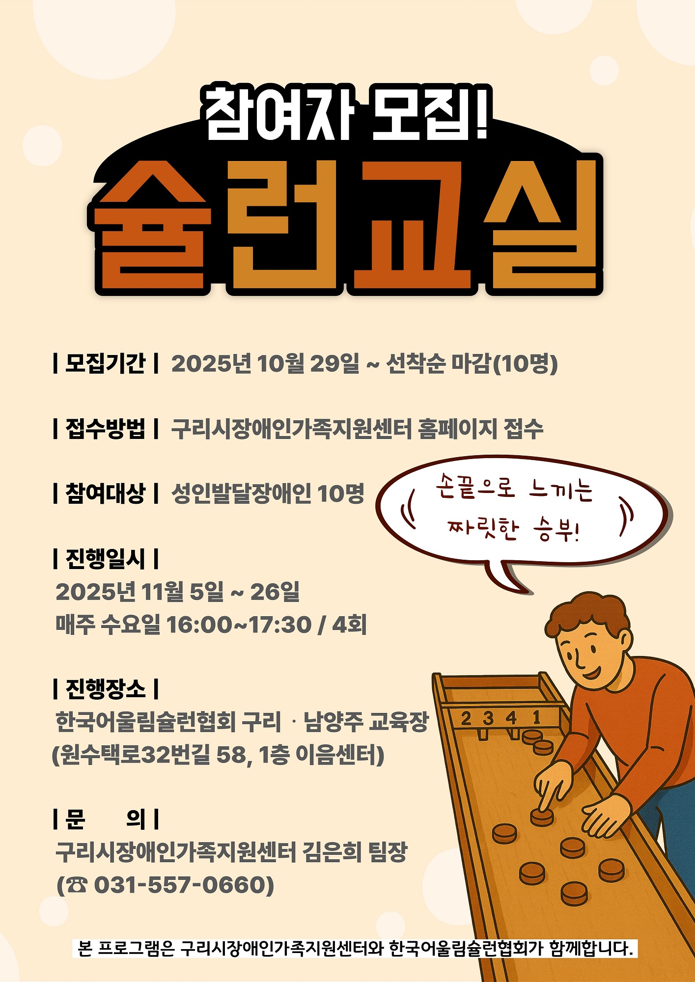 • 진행장소한국어울림슐런협회 구리남양주교육장(개별 안내 예정)